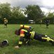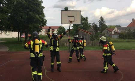 Darum trafen wir uns am Abend, und spielten mit voller Ausrüstung im Wechsel Fußball und Basketball auf einem Sportplatz. Obwohl das Wetter nicht besonders Warm war, kam jeder schon nach kurzer Zeit gehörig ins Schwitzen. Das eingeschränkte Sichtfenster unter der Maske und die schwere Ausrüstung stellen hier ein deutliches Handicap dar. Der Spaß und Teamgeist kam bei dieser Übung der besonderen Art nicht zu kurz.