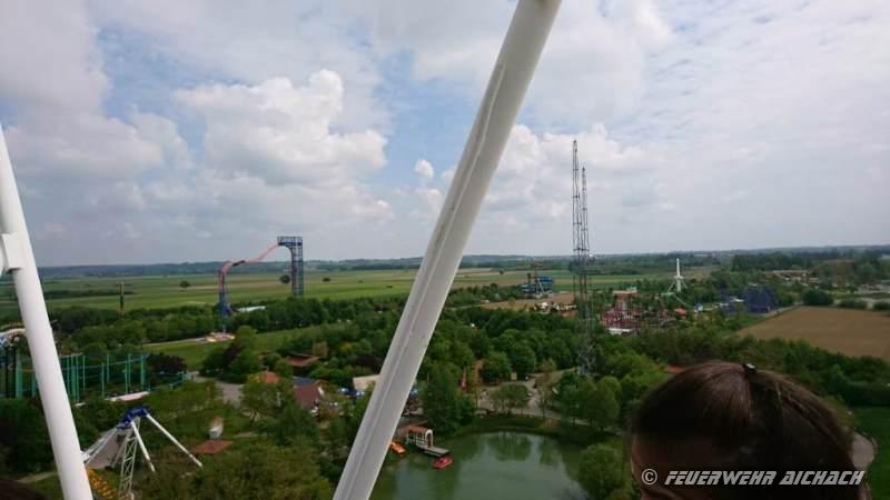 Um 11 Uhr ging es dann endlich in den Skyline Park, die Jugendlichen der Feuerwehr Aichach teilten sich in 2 Gruppen auf und konnten dann bis 18 Uhr alle Fahrgeschäfte des Parkes fahren. Bei herrlichem Wetter, was für den Sonntag allerdings "nur" als wechselhaft angekündigt war, war im Park nicht allzu viel Andrang, was das Warten an den Attraktionen merklich verkürzte.