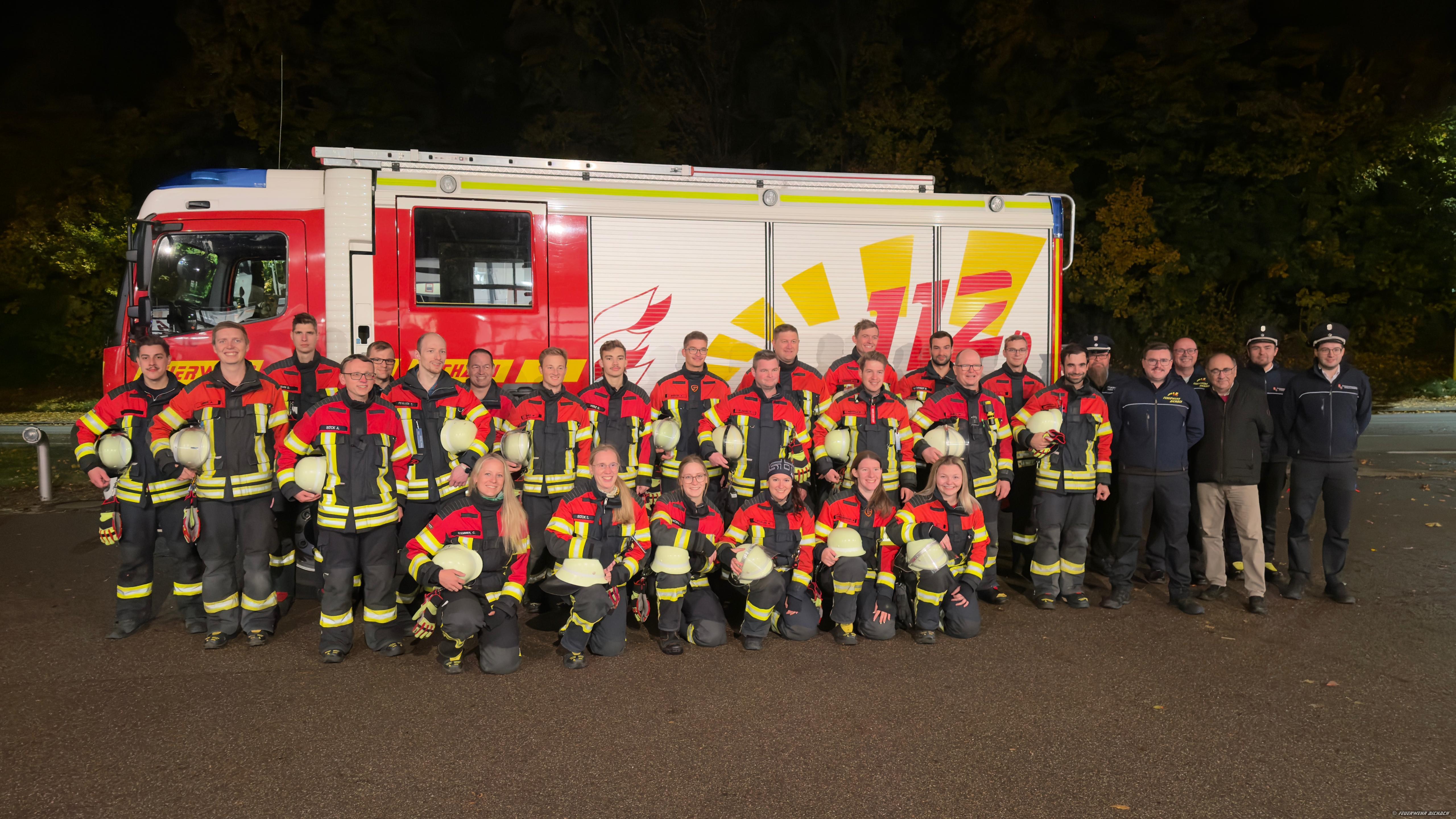 Am Freitagabend den 24.10.2025 fand in Aichach die Abnahme der Leistungsprüfung „Die Gruppe im Hilfeleistungseinsatz“ statt. Insgesamt 25 Feuerwehrkameradinnen und -kameraden der Feuerwehren Aichach und Oberbernbach stellten sich der anspruchsvollen Prüfung für das Feuerwehrleistungsabzeichen.