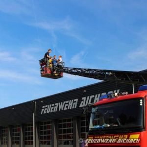 Am nächsten Morgen und dem gemeinsamen Frühstück waren alle gestärkt für das Highlight der Aktion. Einmal selbst mit der Drehleiter hoch hinausfahren, um einen Blick aus der Vogelperspektive auf Aichach zu werfen. Einige konnten sogar ihre Schule, oder zum Teil das eigenen Haus erspähen.