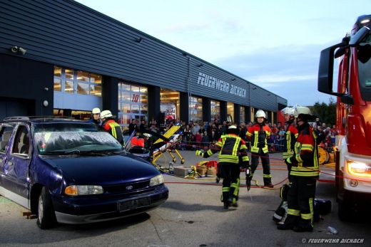 Am Samstag 23.09.2023 lud die Freiwillige Feuerwehr Aichach zur bayernweiten „Langen Nacht der Feuerwehr“ ein. Von 16 bis 21 Uhr konnten sich zahlreiche Bürgerinnen und Bürger, vor allem auch Familien mit Kindern über die Feuerwehr vor Ort informieren. Neben der Vorführung eines Rettungskorb-Einsatzes und eines simulierten Verkehrsunfalls wurden verschieden Schutzkleidungen ausgestellt und die Fahrzeuge präsentiert. Die Jugendfeuerwehr organisierte eine „Mitmachaktion“ mit einem Kreuzworträtsel über die Feuerwehr Aichach, Geschicklichkeitsspiele, wie dem „Schlauchkegeln“ und Steine aus dem „Wackelturm“ ziehen. Die Bereitschaft Aichach des Bayerischen Roten Kreuzes unterstütze uns bei den Übungen und informierte die Bürger an einer Reanimationsstation. Ein besonderes Highlight war dabei der Rettungswagen sowie das neu beschafft Quad des BRK. Auf der Rückseite des Gebäudes könnte die neue mobile Atemschutzstrecke des Landkreis Aichach-Friedberg besichtigt werden. Eine simulierte Fettbrandexplosion bei Dunkelheit rundete die Veranstaltung für die begeisterten Bürgerinnen und Bürger ab.