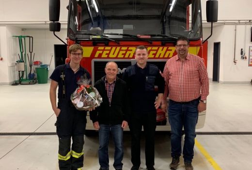 Zum 75. Geburtstag gratulierte die Freiwillige Feuerwehr Aichach Ihrem langjährigen Mitglied Bernhard Rößner.