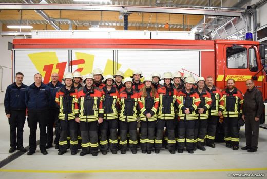Die Feuerwehr Aichach hat nun 9 neue Maschinisten für Hubrettungsfahrzeuge (Drehleitern).